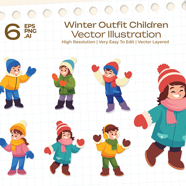 Premium Winter Outfit Children Vector Illustration – 6 EPS & PNG Files
