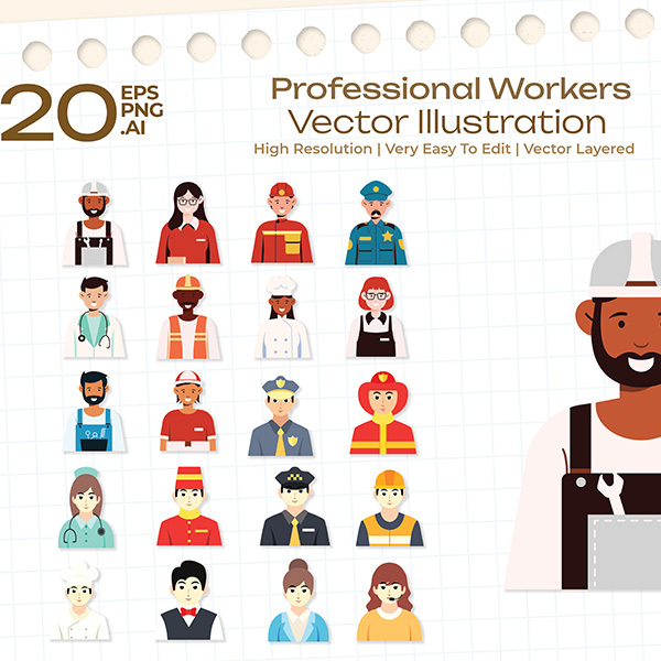 Premium Professional Workers Vector Illustration – 20 EPS & PNG Files