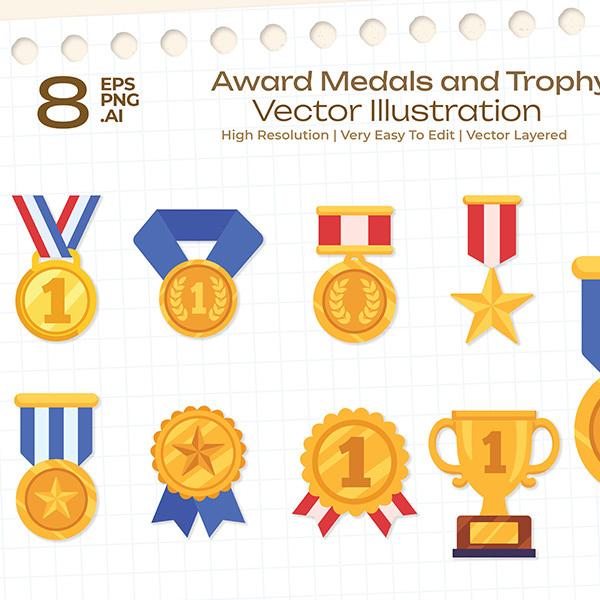 Premium Award Medals and Trophy Vector Illustration – 8 EPS & PNG File