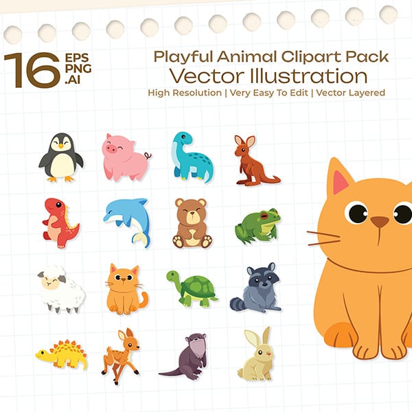 Premium Playful Animal Clipart Pack Vector Illustration – 16 EPS & PNG Files