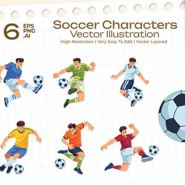 Premium Soccer Characters Vector Illustration – 6 EPS & PNG Files